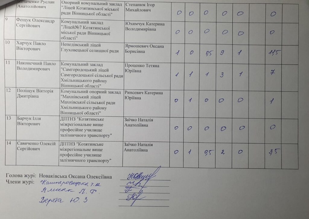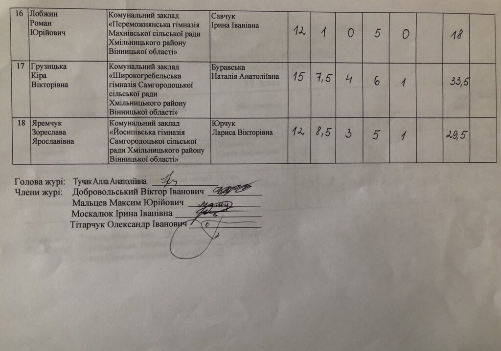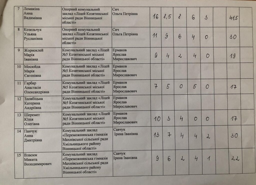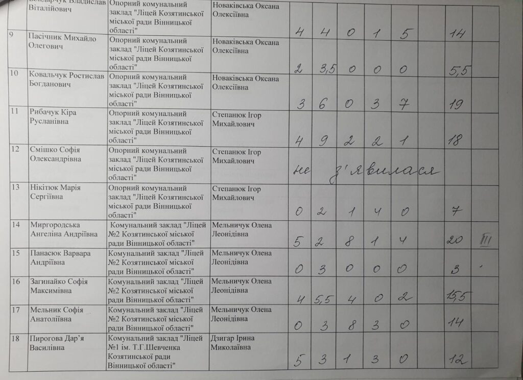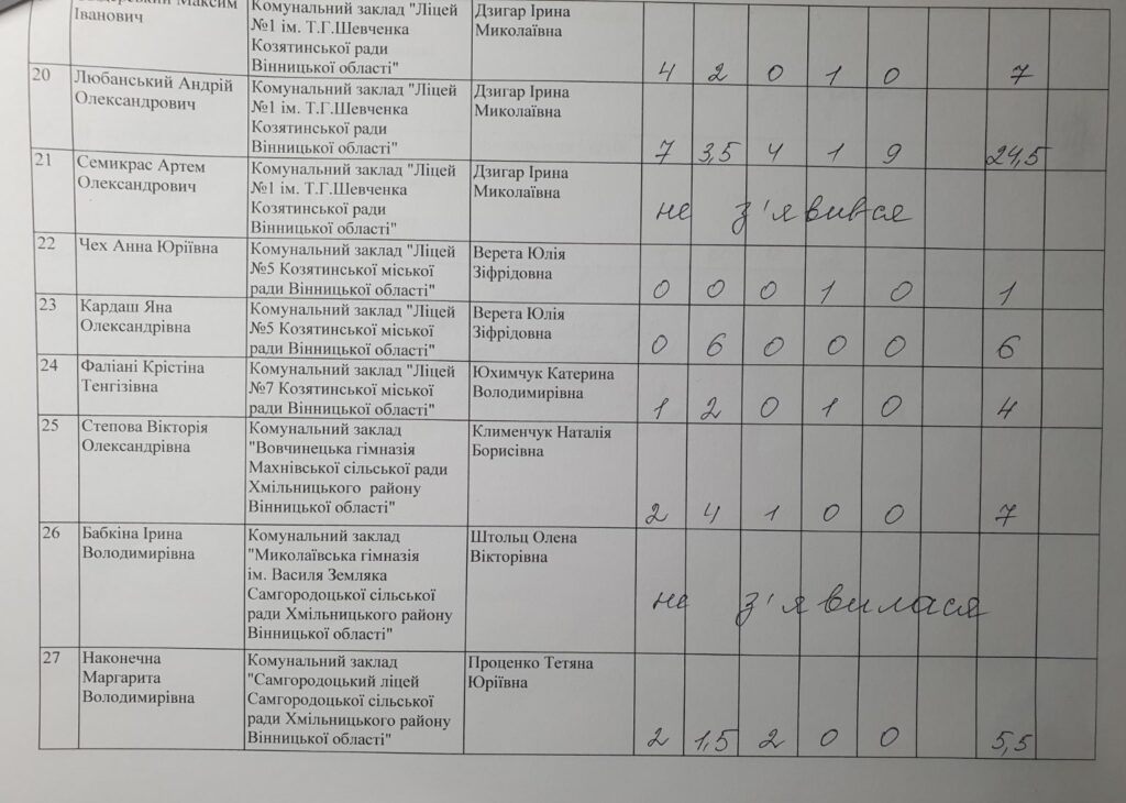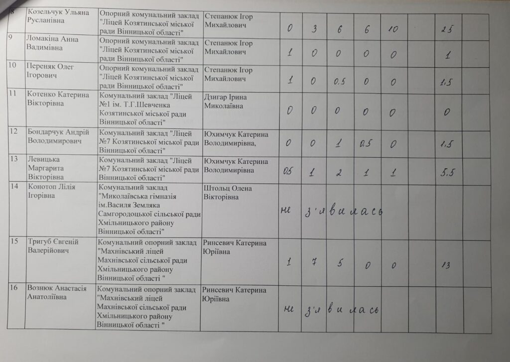 Підсумковий протокол І етапу Всеукраїнської учнівської олімпіади з математики у 2025/2026 навчальному році